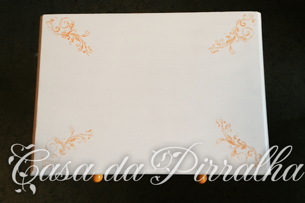 No tampo usei uns cantos de carimbo que deram ao meu projecto um pormenor delicado e feminino sem, no entanto, ser demasiado rocócó, como podem verificar pelas fotos: